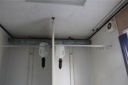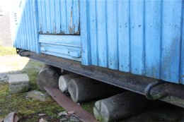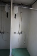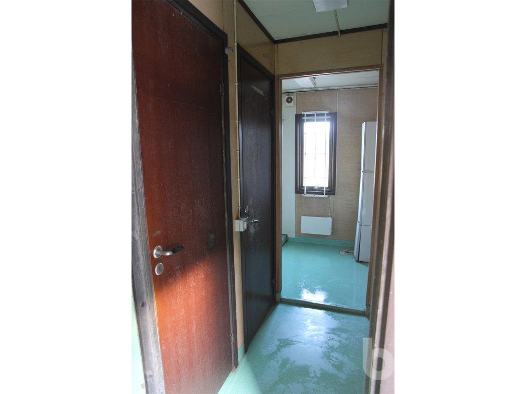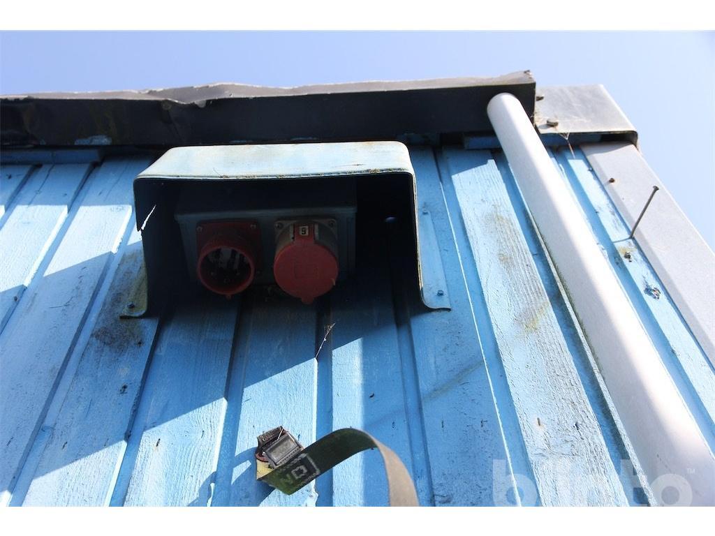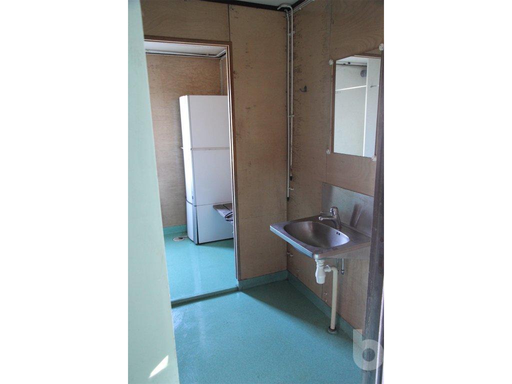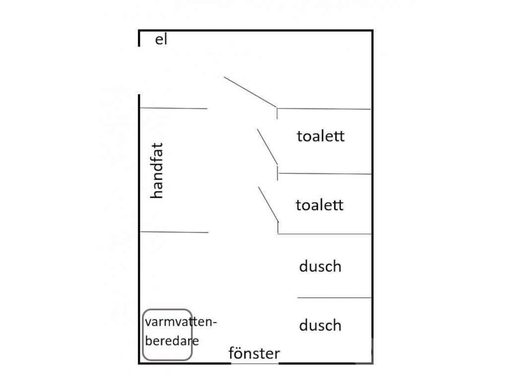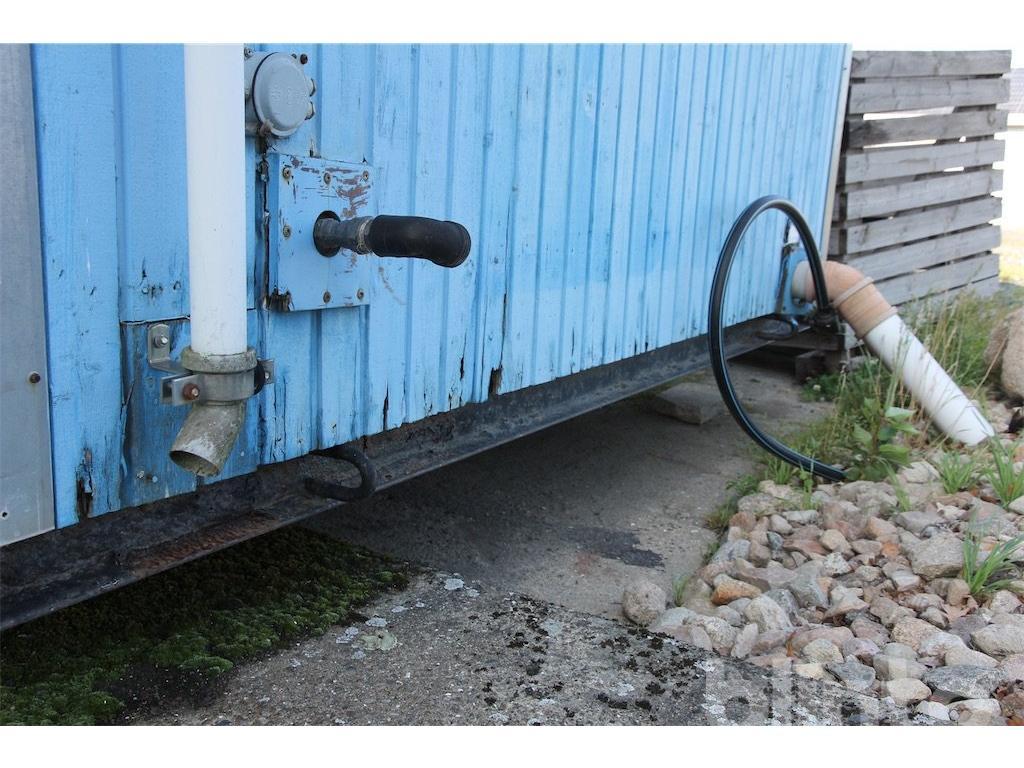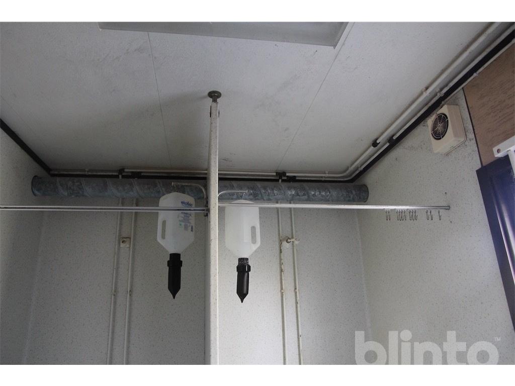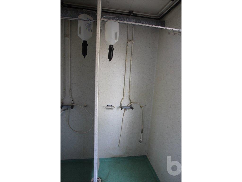 Boden innehåller 2 toaletter, 2 duschar, ett rostfritt handfat samt en varmvattenberedare som ej är funktionstestad. Säljes som ett reparationsobjekt. Det åligger köparen att transportera bort boden efter genomfört köp.