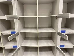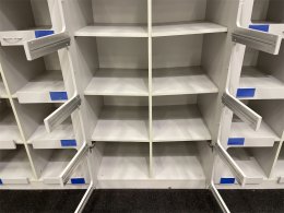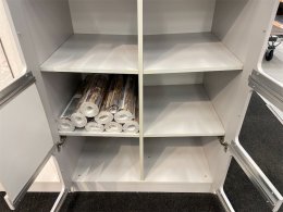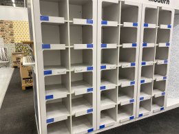 Hyllplanen är monterad för att luta in mot mitten