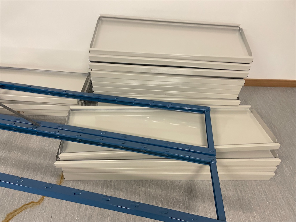 Mounting materials, handles, etc., for a complete shelving system