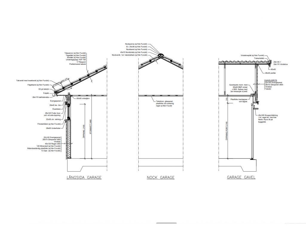 Takstolar med inklädd takfot ingår.