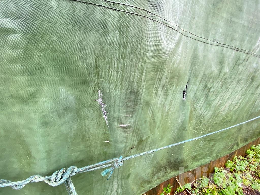 Hål i presenning på vissa ställen ( se bild )