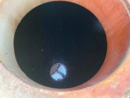 Det är ca 25% kvar i taken ( Bitumen ). ( när man tittar ner i främre luckan )