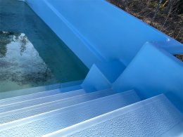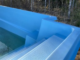 Finns några märken/hål i glasfibern på sidorna, men den är tät i botten