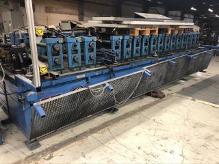 Fungerande rullformningsmaskin, ej funktionstestad då den ej är inkopplad. Fabrikat: AKV/ORTIC Tillverkningsår: 1990 Mått: Längd: ca 6000mm per enhet Max arbetsområde för valsar: ca 800mm OBS: Valsar ingår ej Lasthjälp och frakt går att ordna, ingår ej i affären.
