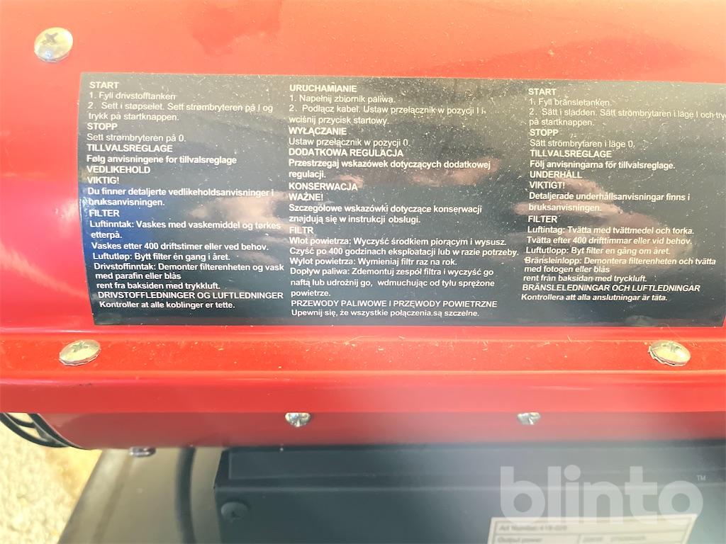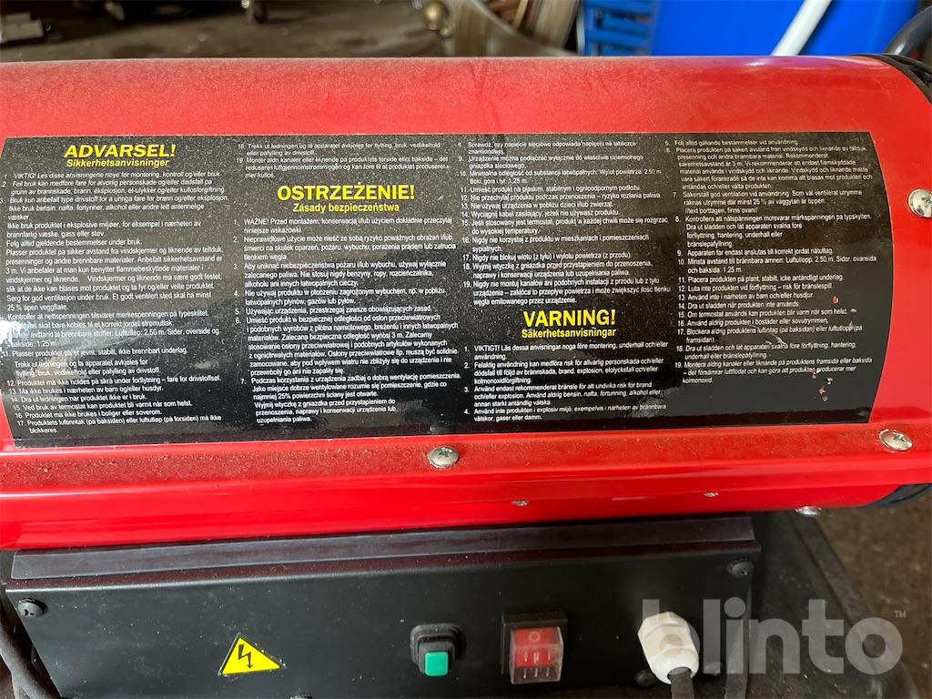Utrustad med flamsensor, överhettningskydd och cut off-skydd. Fläkthus av rostfritt stål. Säkerställ god ventilation före användning