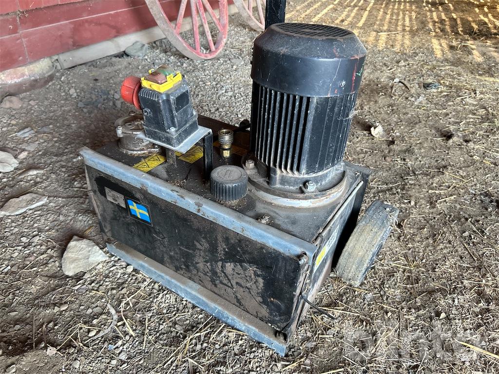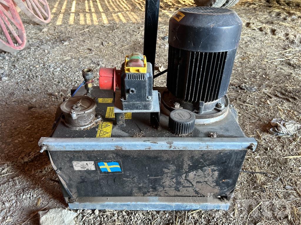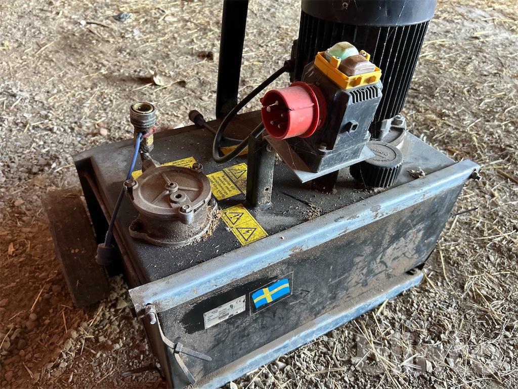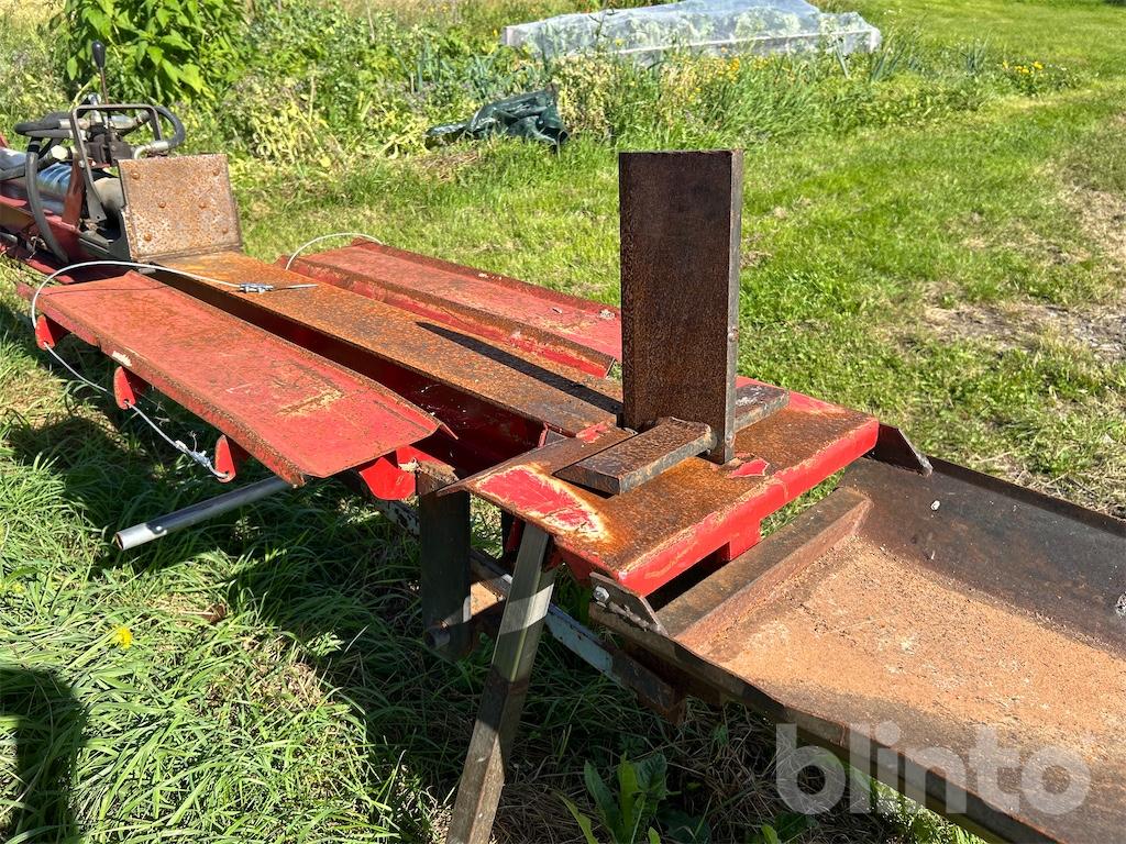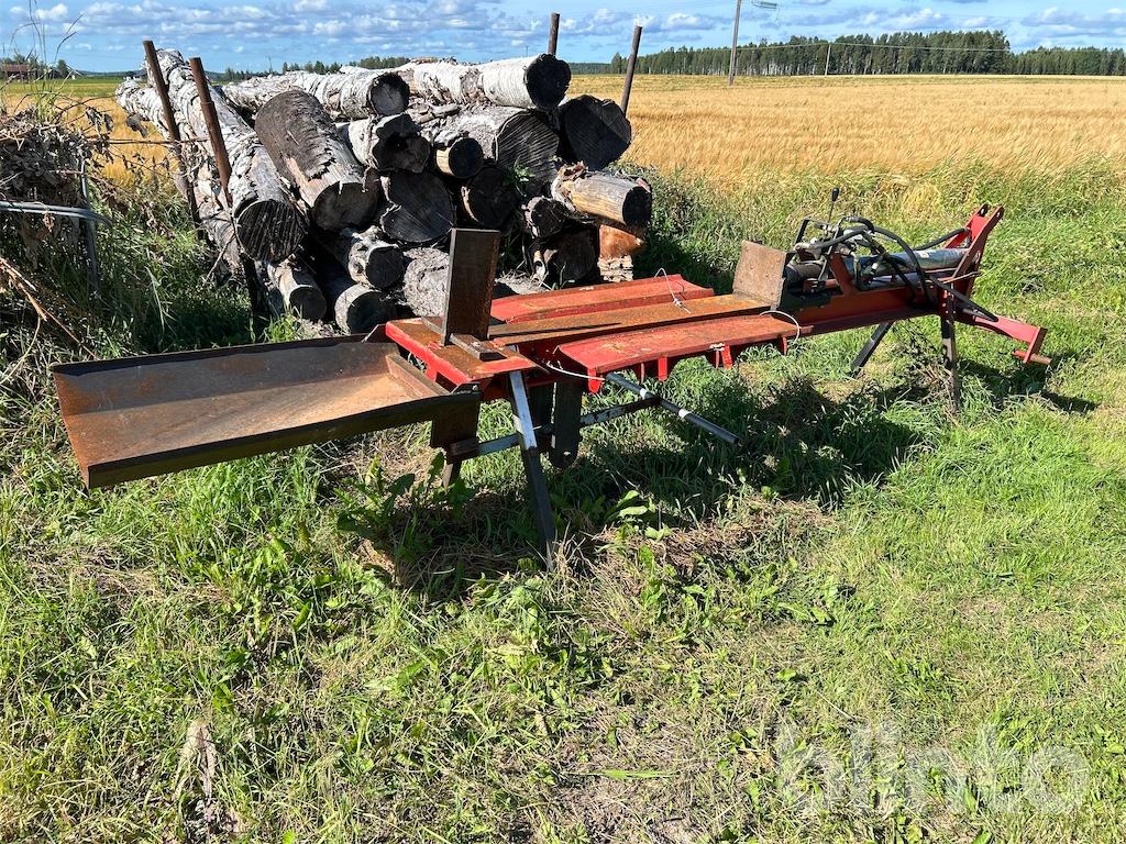 Komplett hydraulisk vedklyv med separat 3-fas hydraulpump. Kan även köras 2-slangat på traktorns hydraulik. Har redskapsfäste för 3-punkt.
