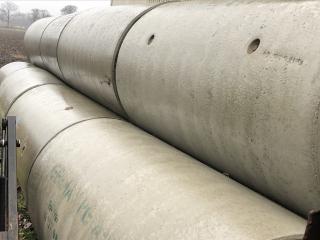 Betongrör Germax PG A-165 C Längd 2400 mm Diameter invändigt 800 mm Diameter utvändigt 1000 mm Antal 12 stycken Något rör är kantstött se bilder.