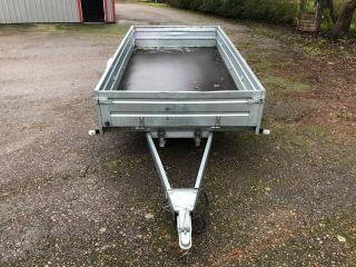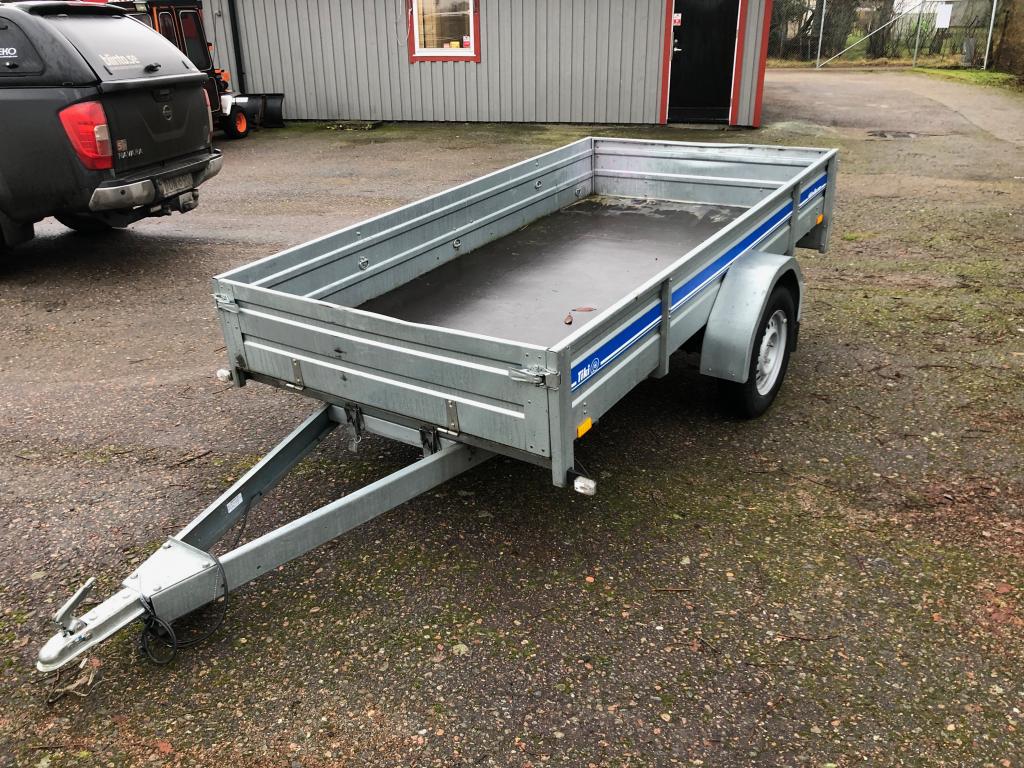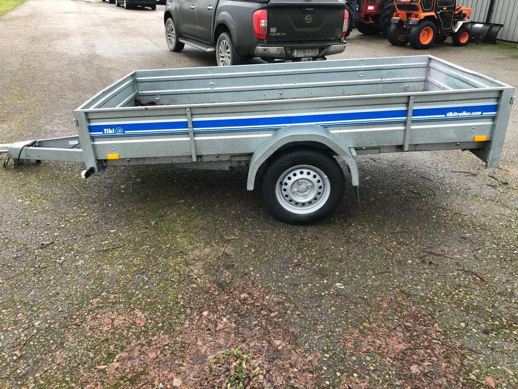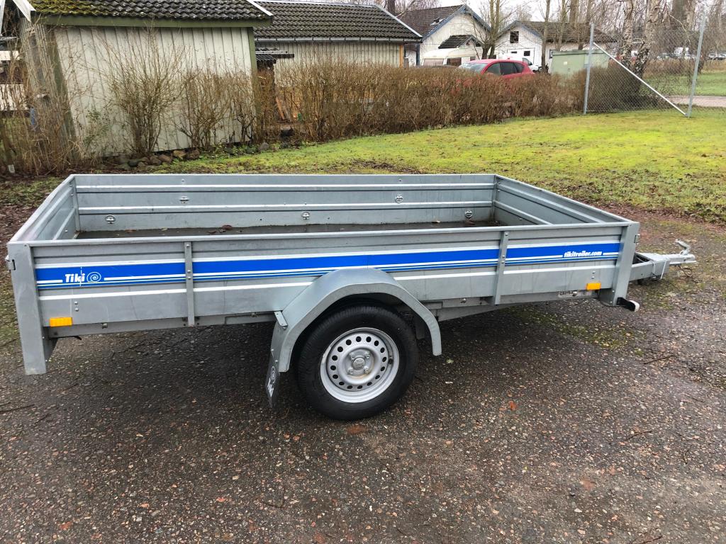 Bilsläp Tikitreiler Årsmodell 2016 Obromsad / tippbart flak Flak längd 2,75 & bredd 1,40 Besiktad till 31 /12 2020 Däck 155/80 13" endast sommarhjul , bra däck Totalvikt 750 kg Tjänstevikt 216 kg Max last 534 kg Finns ett litet hål i baklampa se bild Bra skick för övrigt , en praktiskt villa kärra med större flak