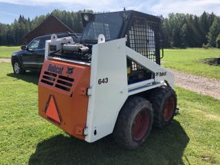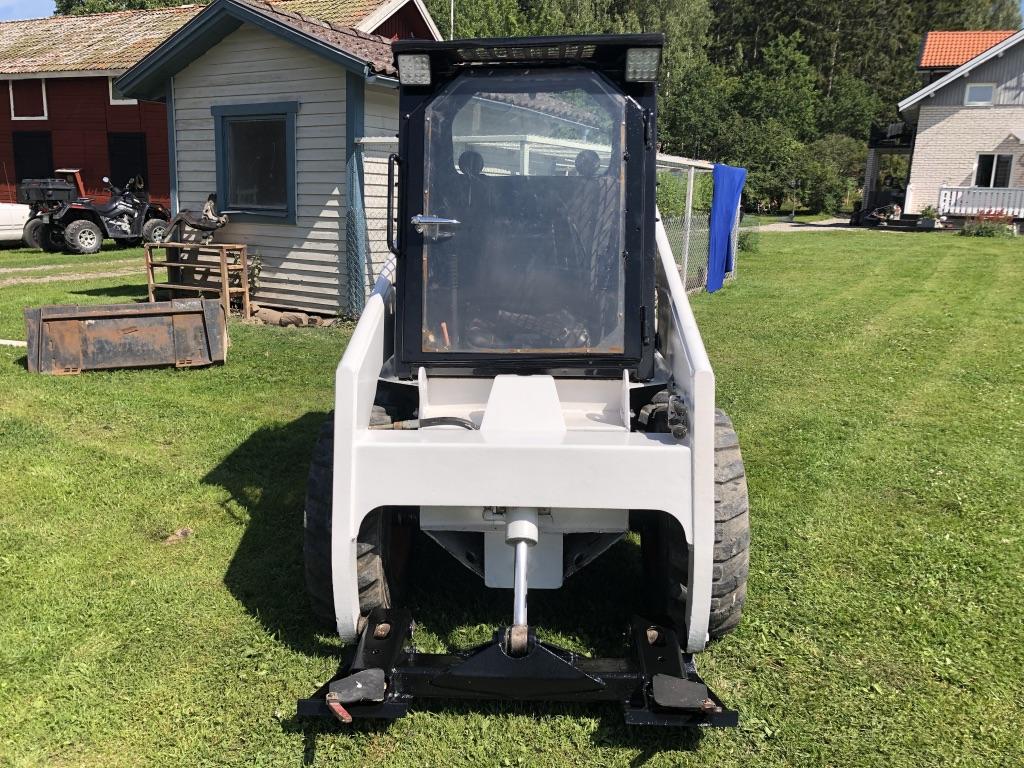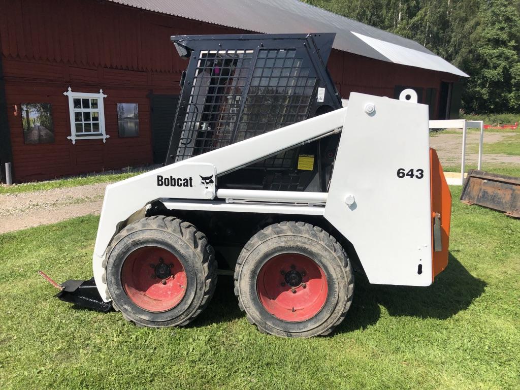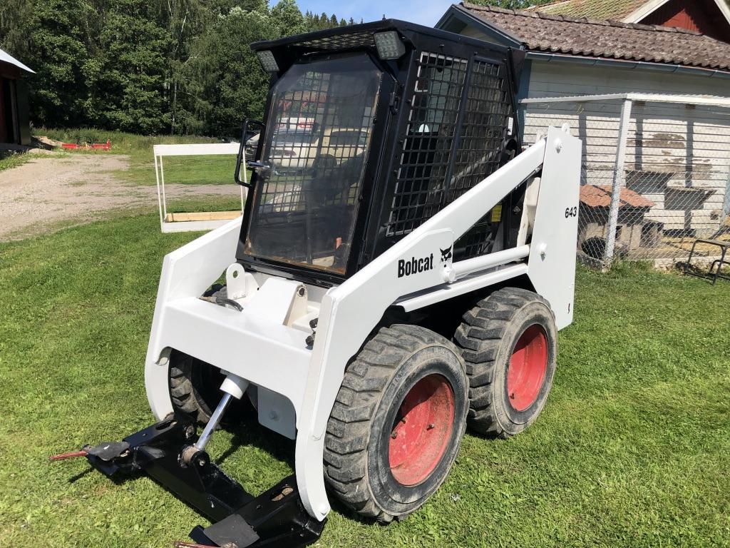 En Bobcat 643 År: 1997 Drifttid: 3104 tim Motorvärmare LED-arbetsbelysning Öppningsbara fönster Låsbar dörr Roterande varningsljus med snabbfäste Bra däck Ny-servad Nytt batteri Högtalare Ny kupéfläkt Kupévärme Redskap: Planerskopa med nytt skär Snökopa med nytt skär Krokodilgrep Snöblad Snökedjor Fullt fungerande