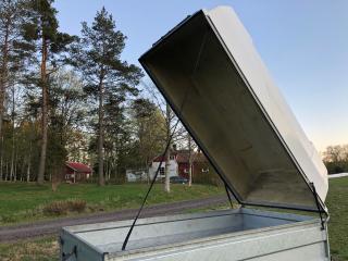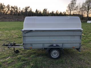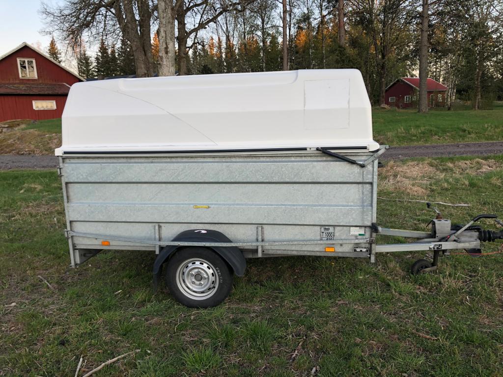 Brenderup Kåpsläp Årsmodell 2015 Däck sommar 155/80-13 bra däck Däck vinter 155/80-13 bra däck 1 ägare Besiktad till 31/5 2021 , är i trafik - Totalvikt 1000 kg - Tjänstevikt 310 - Maxlast 690 kg - Fullt fungerande släp - Bra skick - Lasthjälp finns på plats om det behövs