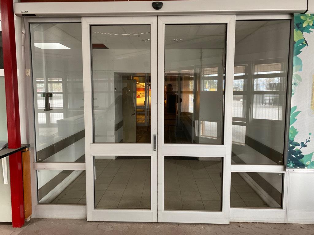 Dubbel elektrisk skjutdörr i aluminium för butik.