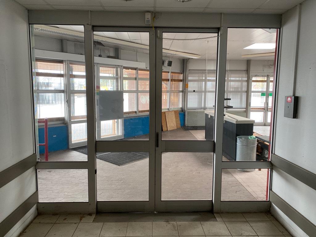 Köpare ansvarar för nedmontering av butiksdörr.