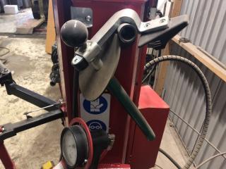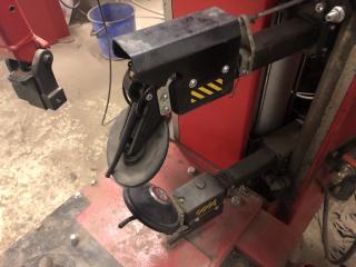 En Butler Kendo 30S Däckmaskin År: 2015 Butler KENDO 30S: -Automatisk däckmaskin -Med automatisk krok och dubbla klinchrullar. -Snabb inställning av rullarna och verktyget. -Klinchrullar och verktyg placeras samtidigt i en enkel rörelse. -Automatisk armlåsning -För större precision låses armarna automatiskt på plats under montering och demontering. -Griptrycket ökas automatiskt under rotation. -Hastighet inställd av operatören, exakt efter behov. -Omvandlare med regulator för att skydda däcket. -3-läges utdragbar bas med standardkonfiguration 10 ”-26”. -Operatören kan utöka arbetsområdet upp till 30 ” -Maskinen är mycket fint skick och har enbart gjort några hundra hjul Demonstrationsvideo av Butler Kendo 30S* från Youtube *ej samma maskin som i annons