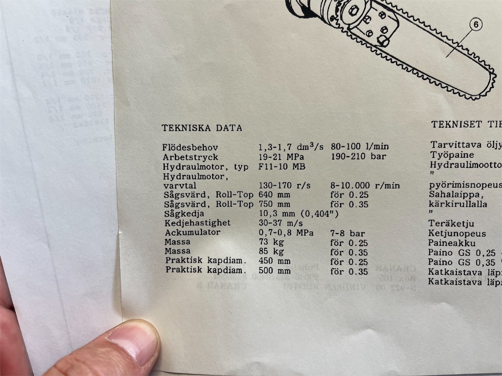 Kedjehastighet: 30–37 m/s