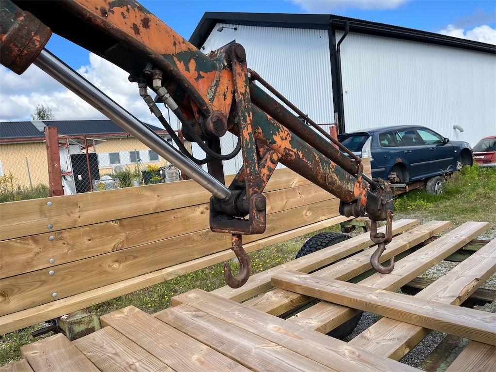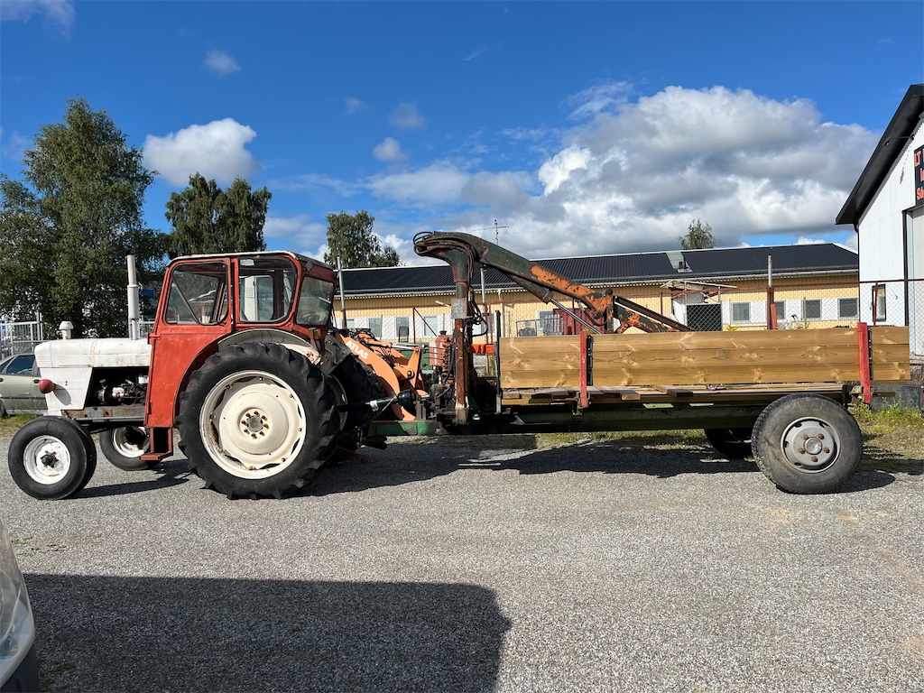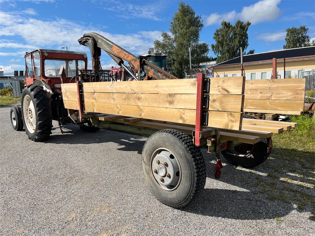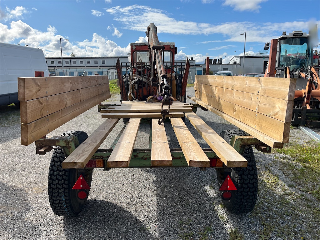 Traktor med kran och kärra