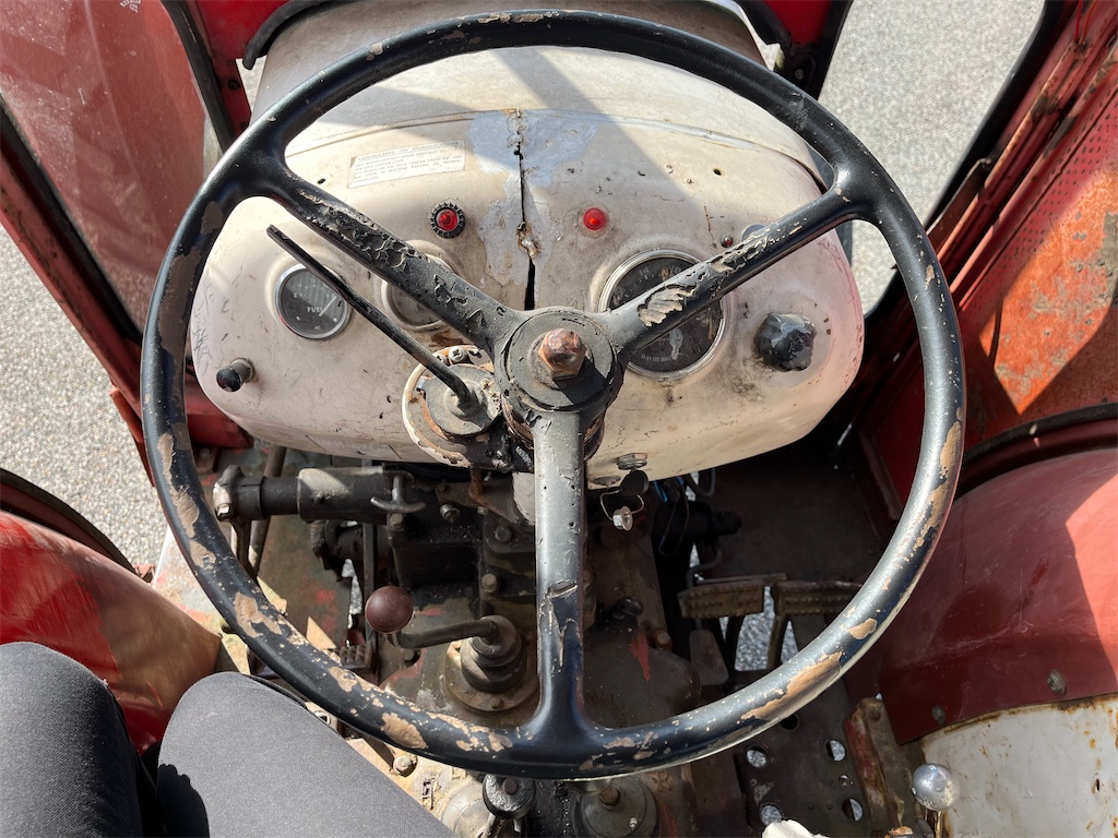 Äldre traktor, rost, repor och bucklor förekommer