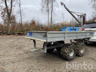 Flak medföljer (se bilder), flaket är demonterbart och kan då användas som skogsvagn.