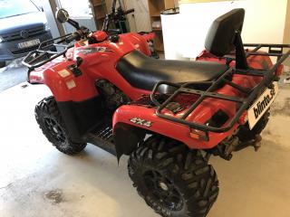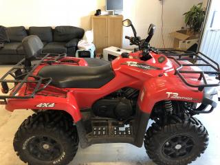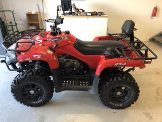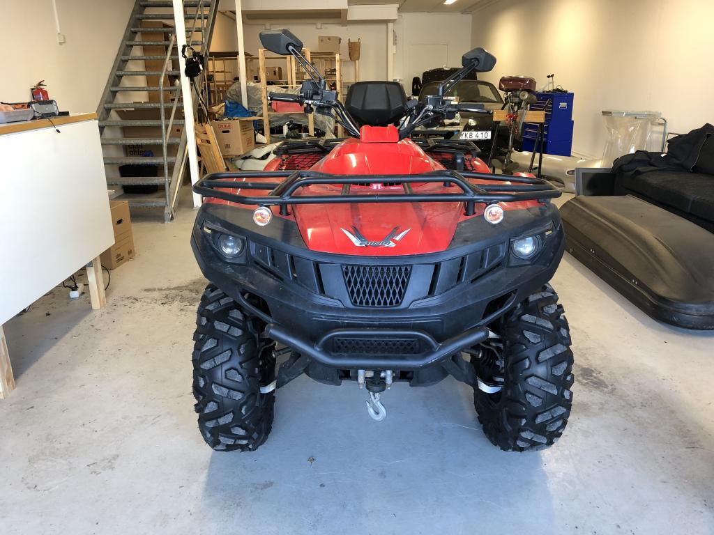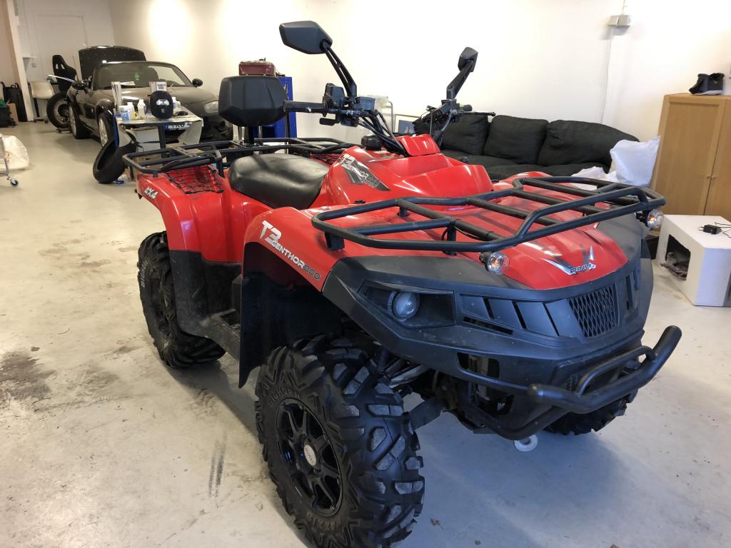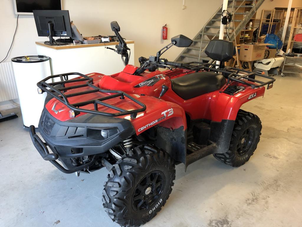 Traktor-registrerad 800cc ATV - Dinli Centhor T3 Traktor-registrerad innebär: Ingen skatt, ingen besiktning, fri dragvikt, låg försäkring och får köras med moped-kort. Köptes ny för 5 år sedan och har används till och från sen dess. Aldrig körd i grovteräng utan mest på grusvägar osv. Kosmetiska skador finns men inget som förstör själva fordonet utom utseendet. Alltid förvarad i garage. Servad enligt konstens alla regler. Vinchen funkar dock inte och handbroms handtaget har gått av men resten fungerar bra!