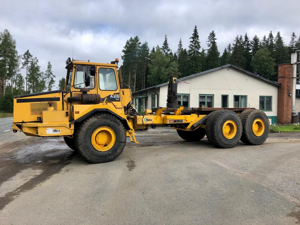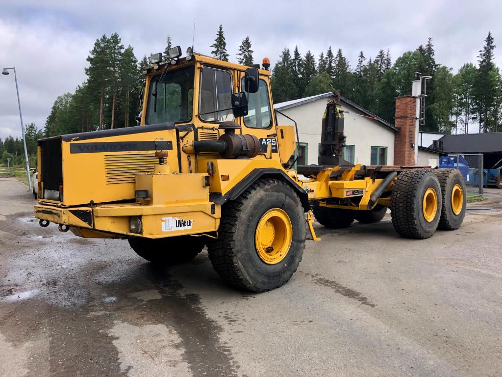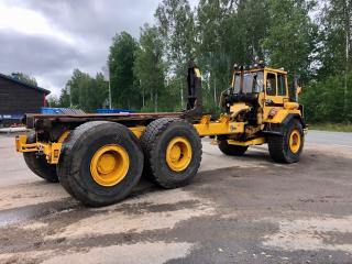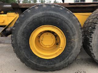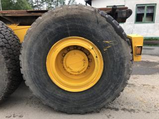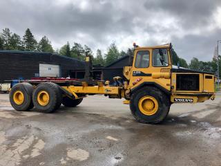 Dumper A25 är en ramstyrd fjädrad dumper med en lastförmåga av 22,5 ton och en last volym av 12,5 kvm. Fabrikat: Volvo BM 5350B 6x6 Modell: A25 Årsmodell: 2007 Chassi: 6625 Drifttimmar: 28629h Drivmedel: Diesel Växellåda: Automat Motoreffekt: 163kw Bromsanordning: Tryckluft Fordonskattepliktig: Nej Mått/vikt: Längd: 4550mm Bredd: 2750mm Tjänstevikt: 8040kg Max last: 3160kg Motor: - Volvo TD 71 K med laddluftkylare. - 6 cylindrig, fyrtakts, direktinsprutad, turboladdad dieselmotor. - Cylindervolym: 6,73 liter. Avställd: 2019-02-27 Släp: Fabrikat: Volvo BM 5350B 6x6 Fordonsår: 1990 Chassi: 6625S I trafik första gången i Sverige: 2007-10-10 Mått/vikt: Längd: 6250mm Bredd: 2750mm Tjänstevikt (faktisk vikt): 8860kg Drivaxlar: 2st Max axelavstånd axel 1: 1650mm Däckdimension: 23,5-25 Utrustning: Tipp och krok Övrigt: - Skärmar fram är bytta på båda sidor, se bild. - Bytt tändningslås - Registerad som traktor - Helt fabriksbyggd - Livab krok - Går att köra i 50km/h - Instruktionsbok medföljer Skick: Säljes i begagnat fungerande skick. Om maskinen står still en längre period kan handbromsen fastna men går att lösa genom att knacka till den. Ljuddämparen läcker lite. Tätningen i kompressorn är gången och bör bytas. AC har varit i drift men funktion osäker. Drivhjulen är 90%, fram 60% och bak 15% enligt säljaren, se bild. Övrig information, se bild/film.