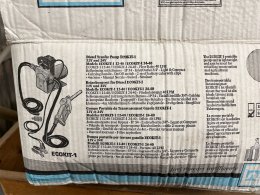 utrustad med bärhandtag, strömbrytare och en manuell pistolventil (munstycke).