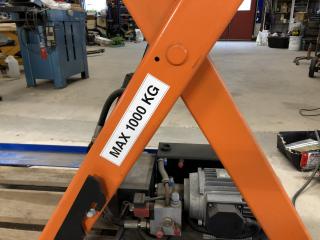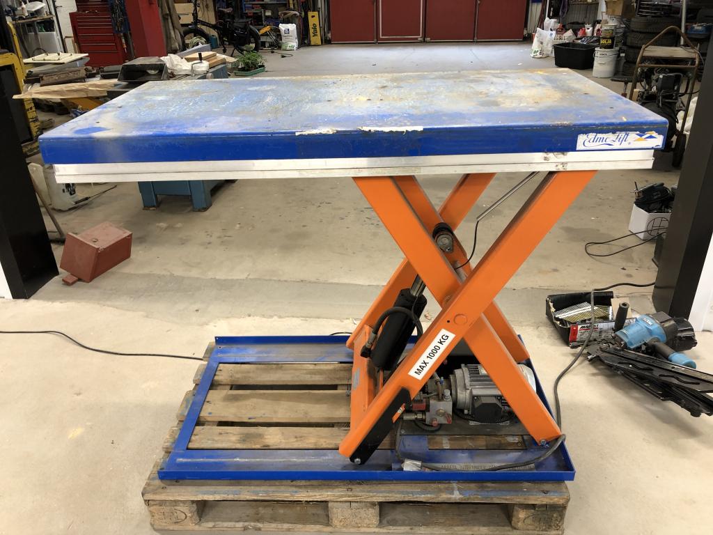 Ett Hydrauliskt Edmo-Lift Lyftbord Typ: TL1000 Kapacitet: 1000 kg Bord: 1,3 x 0,7 meter Max-höjd: 1000 mm Min-höjd: 180 mm Klämlist i full funktion Inga läckage