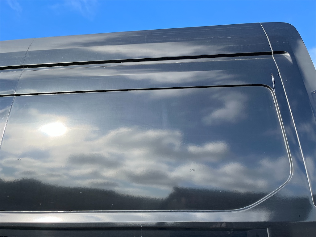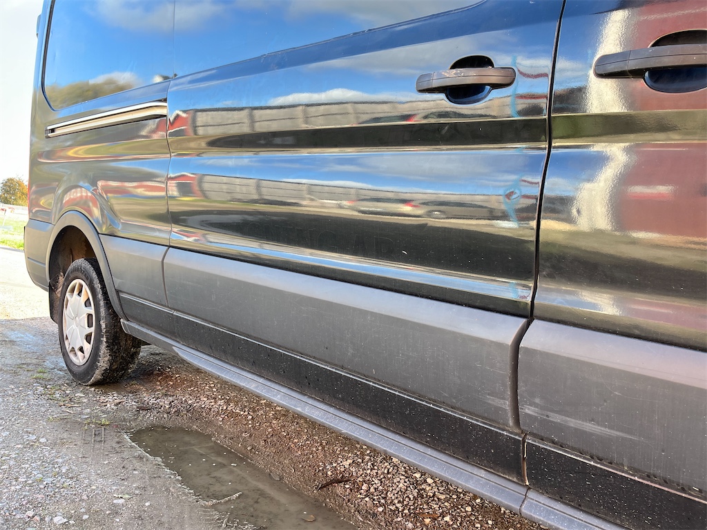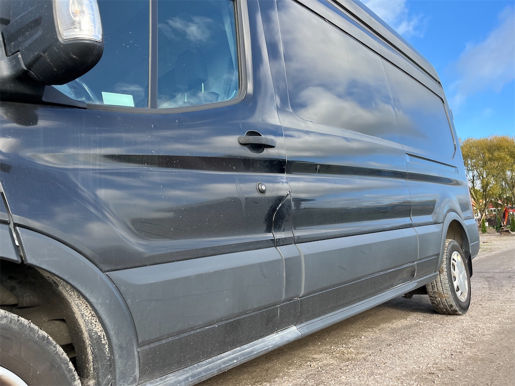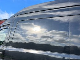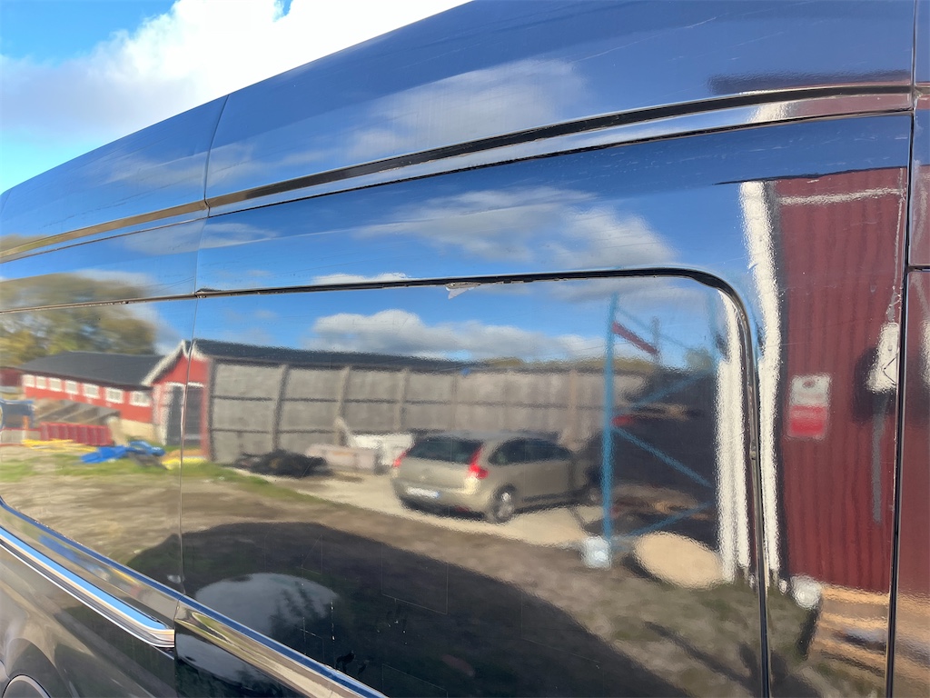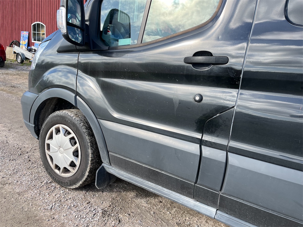 Finns skada på vänster sida samt på höger bakdörr som är anmält till försäkringsbolaget och åtgärdas innan den levereras.