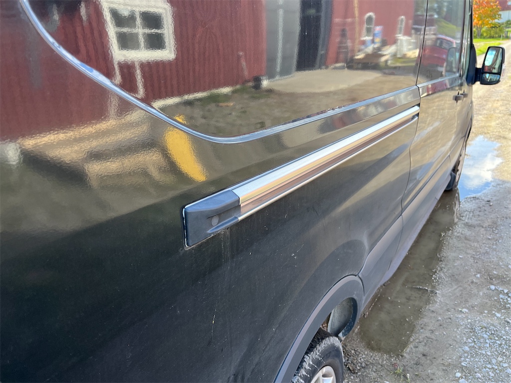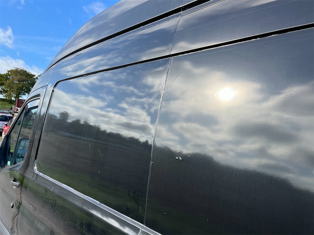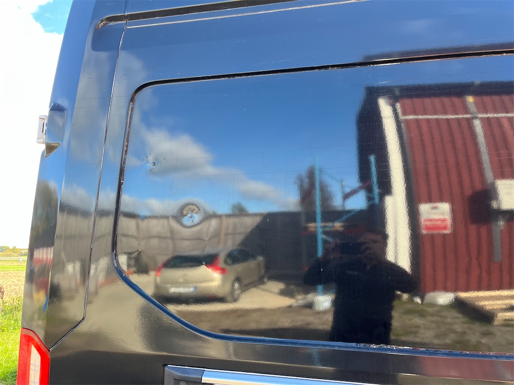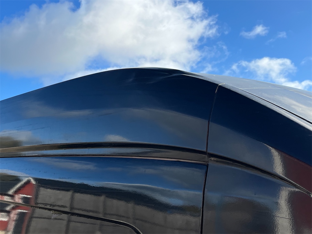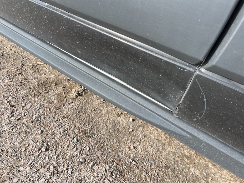 Finns skada på vänster sida samt på höger bakdörr som är anmält till försäkringsbolaget och åtgärdas innan den levereras.