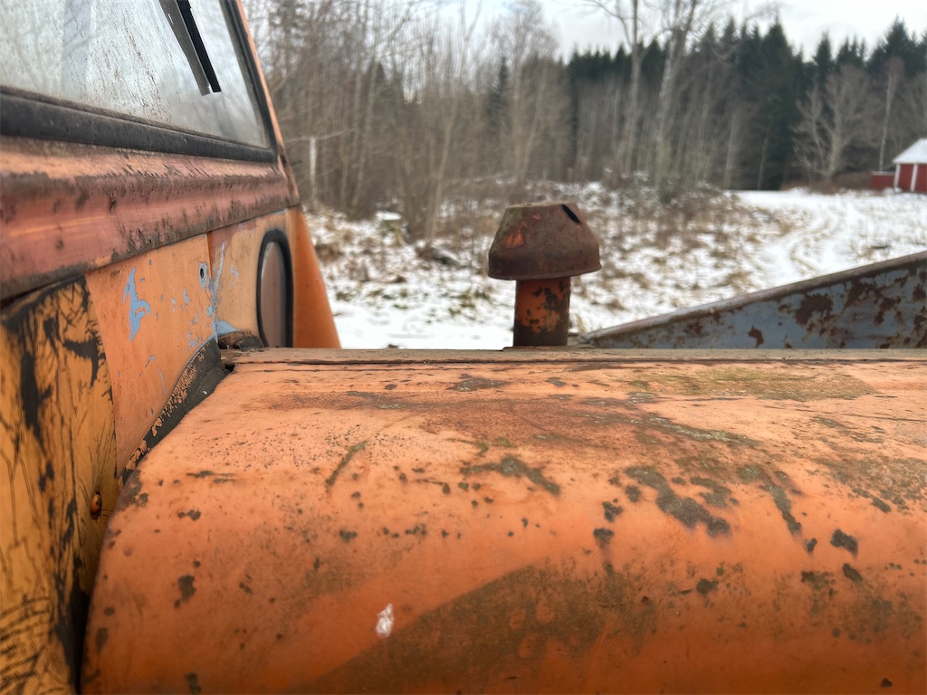 • Rostig, märken finns