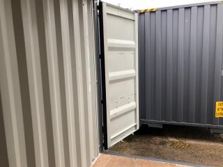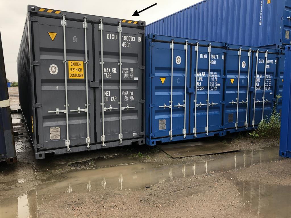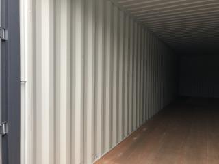 1st 40 fots HC container lackad i grått RAL 7015 Containern är en så kallad envägs container Lastad en gång, med andra ord är den nästan i nyskick! Det är en HC dvs High Cube modell, 30 cm högre invändigt. Mått utvändigt: 12192 mm längd 2438 mm bredd 2896 mm höjd Invändigt: 12032 mm längd 2350 mm bredd 2698 mm höjd Vikt 3680 kg Last 26800 kg Containerfäste Material cortenstål 1,5 mm i väggar 2,0 mm i tak Vagnplywood 26 mm i golv Dörrar på en kortsida Ventilation: självdrag Lockbox monterad, finns olika alternativ till lås att beställa vid leverans Mycket bra förrådscontainer, som står sig i många år i väder och vind Fri lastning, transport förmedlas om så önskas