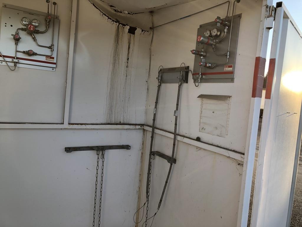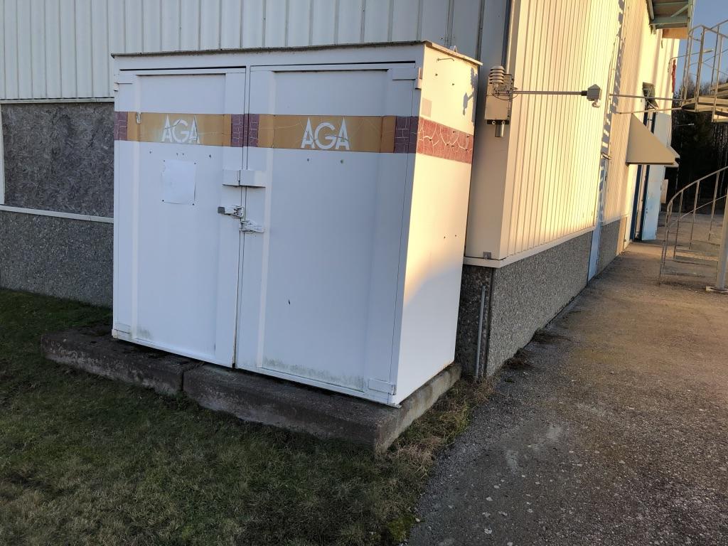 Gasskåp. Bredd: 240cm. Höjd: 210cm. Djup: 115cm.