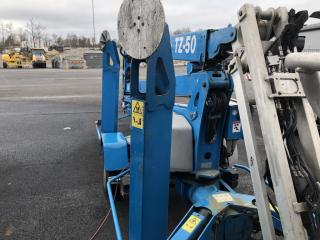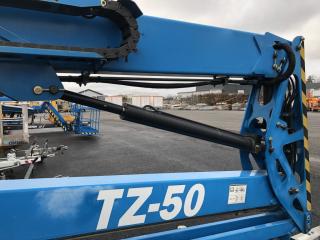 Släpvagnslift Genie TZ50, bomlift med drivning på hjulen.