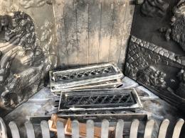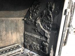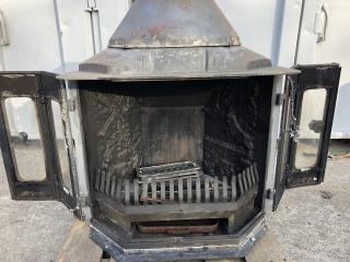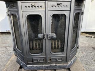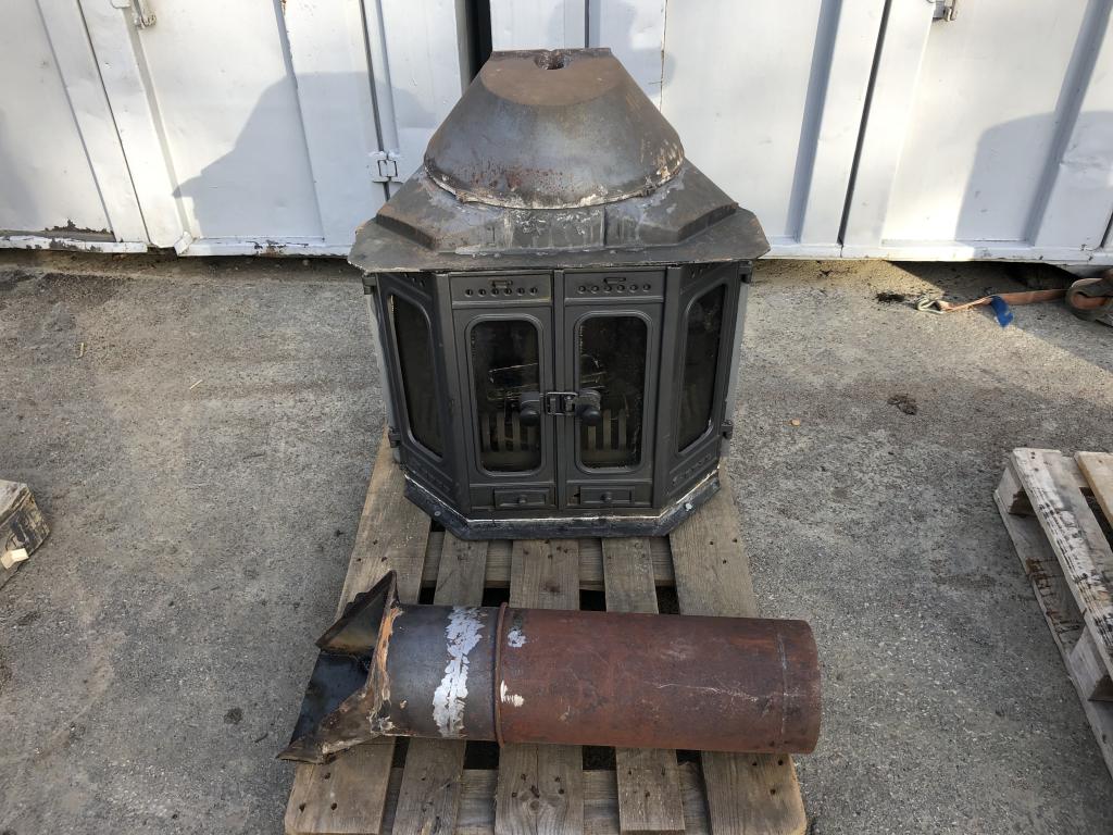 Gjutjärnskamin säljs på uppdrag av ett företag.