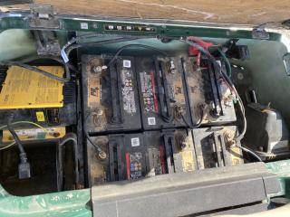 Golfbil i fungerande skick. Går bra vid provkörning, batterierna är ej testade vid längre körsträcka. * Hållare för 2 stycken golfbagar * 4 stycken mugghållare * Fast monterad laddare * Timmar 1085 * Finns lite skav på karossen, se bilder