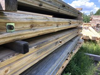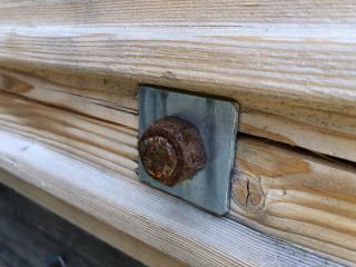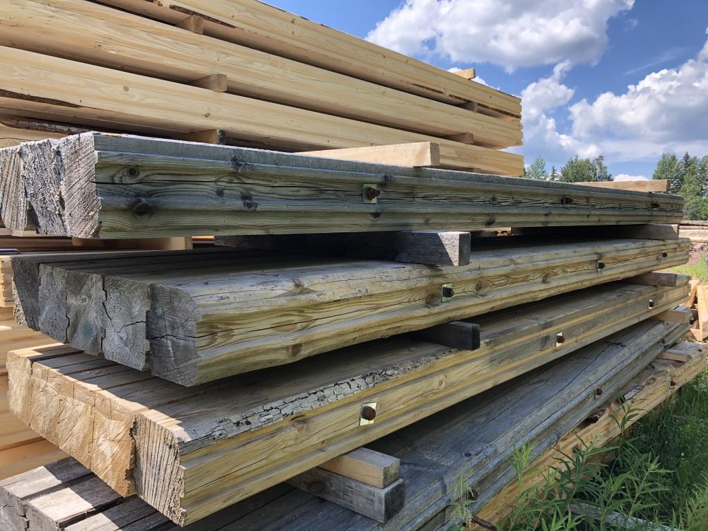 Grävmaskinsmatta (ny) Längd: 4600 mm Bredd: 950 mm Höjd: 190 mm Sammanfogade spontade stockar Hålls ihop med 3 st genomgående gängstänger Fler mattor finns att tillgå