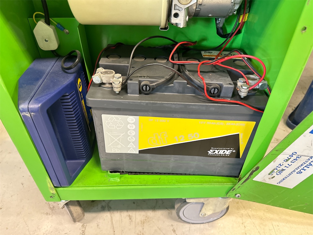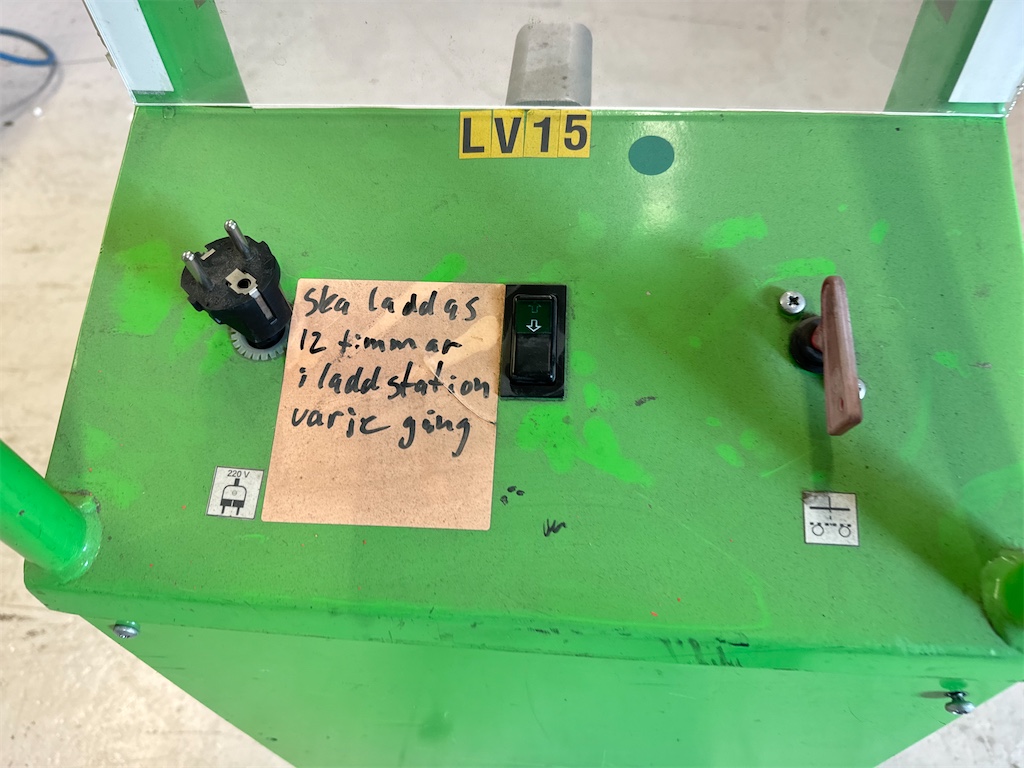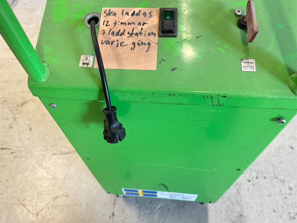 Sitter laddare i. Laddas med vanligt 230 v kabel.