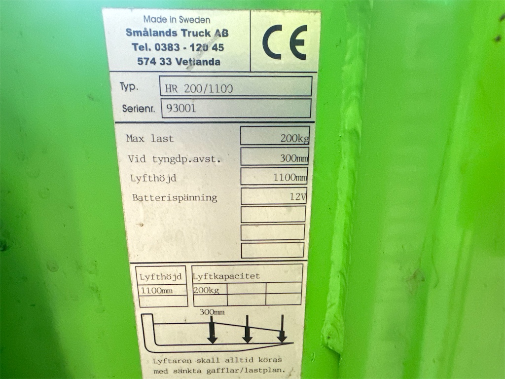 Lyfthöjd: 1100 mm