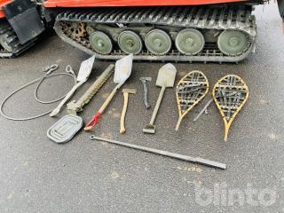 Utrustningspaket med skyfflar, snöskor med mera