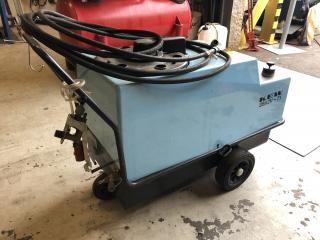 Högtryckstvätt Fabrikat: KEW Modell: 38A2V-71 Tillverkningsår: 1985 Max temperatur: 38 grader Kapacitet: 173 bar -380 volt -50Hz -Slang ingår men ej munstycke Skick: Säljes i brukskick. Inga kända fel enligt säljaren. Ej provkörd på plats. Övrig information, se bild. Säljs på uppdrag av ett företag.