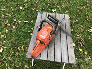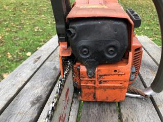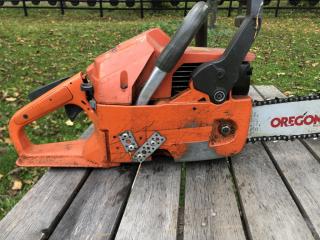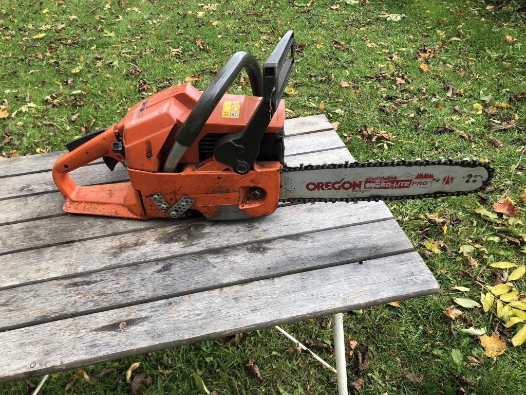 En Husqvarna 242 XPG Motorsåg Handtagsvärme Slagvolym: 42 cc Maxvarv: 15500 rpm Tankvolym: 0,5 l Oljevolym: 0,27 l Sågen går fint Har reparerats (se foto) Säljes för dödsbos räkning