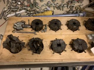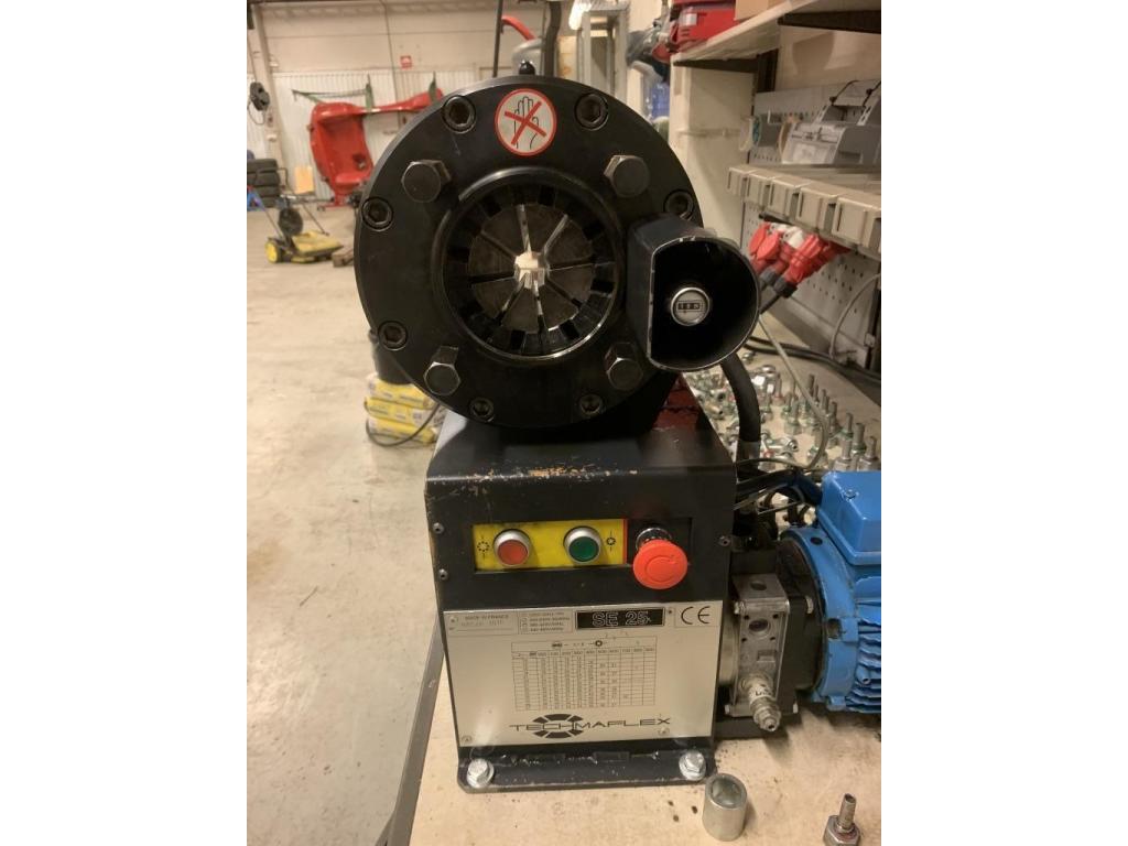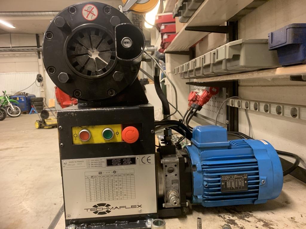 Hydraulpress för slang Techmaflex SE 25 3-fas hydrauldriven press för slang Totalt 10 backsatser En del kopplingar blandade former