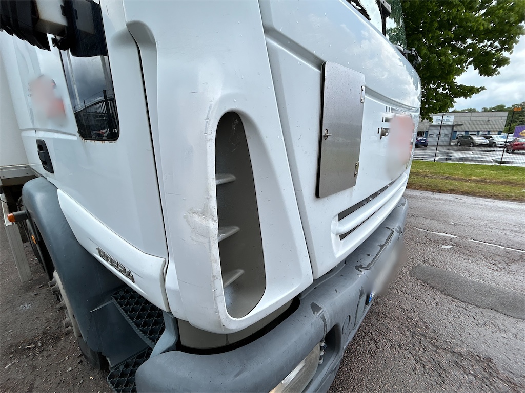 Lastbil med en del visuella defekter. Använd dagligen och fungerar väl. Har ett gott lastutrymme.