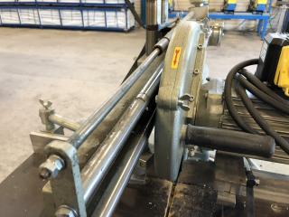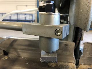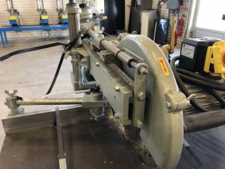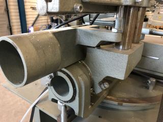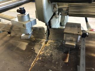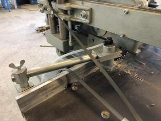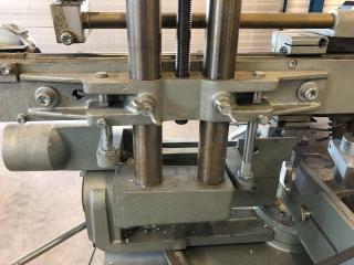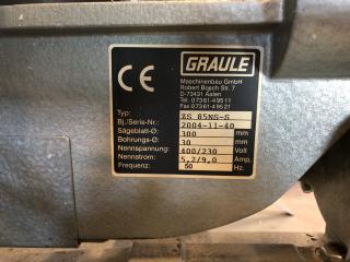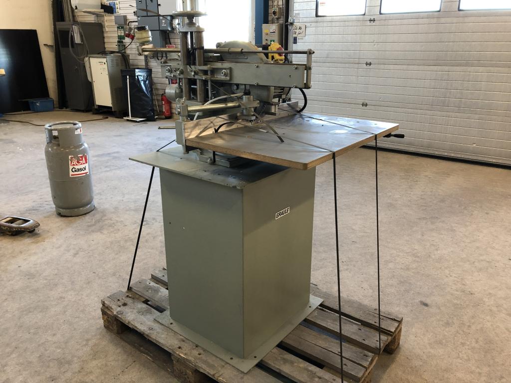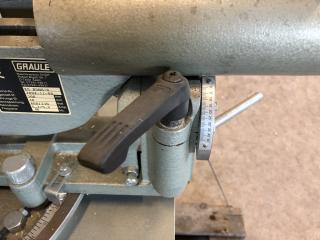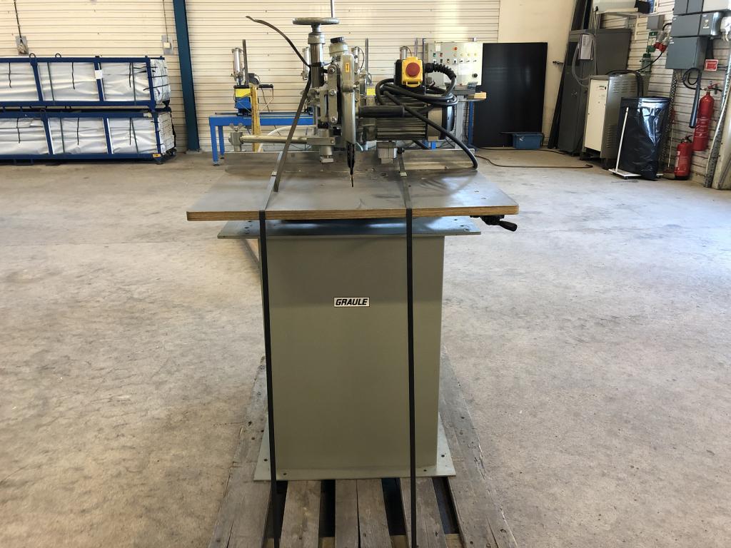 En GRAULE kap från 2004 Använts som Glaslist kap vid fönstertillverkning Fint skick Slaglängd i Y: 480 mm Ställbar vinkel på klinga och anhåll Ställbar höjd av klinga 1 extra set med klingor medföljer