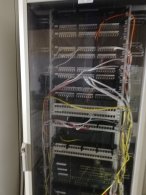 Innehåller datafördelningsrack samt en del äldre routrar. Två av skåpen finns kylfläktar.