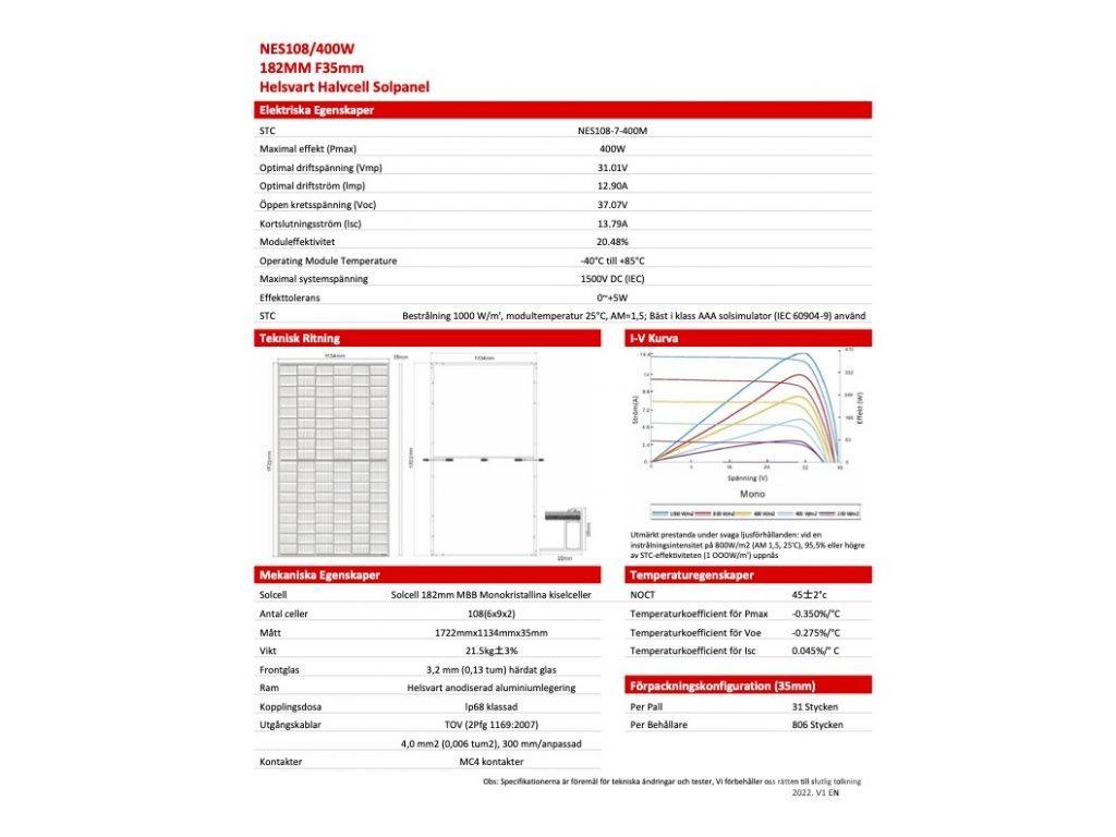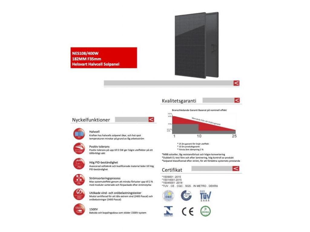 Detta paket består utav 50 solpaner på vardera 172 x 113 cm. Tillsammans bildar dem en yta av ungefär 98 m².