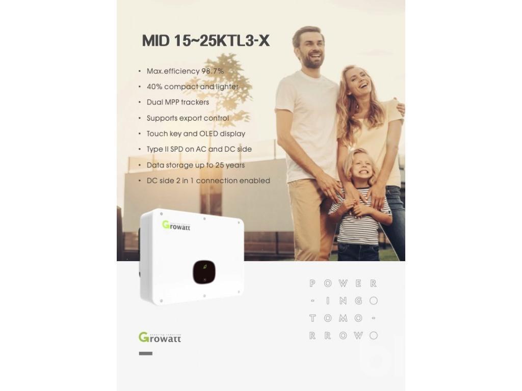 Växelriktaren är på 20 kW och är av det välkända fabrikatet Growatt. Växelriktaren kopplas mellan solpanelerna och er befintliga elmätare.