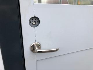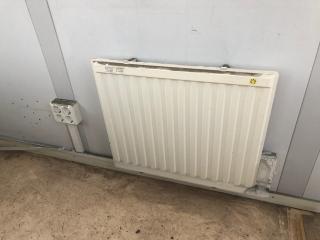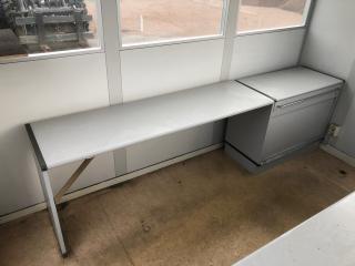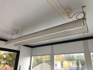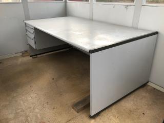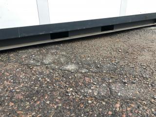 Gaffelförsedd ram, se bild. Belysning inv. El-element. Skriv/Arbetsbord. Låscylinder i dörr saknas. Höjd: 2650 mm. Bredd: 2400 mm. Längd: 2800 mm.