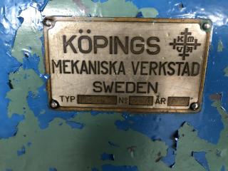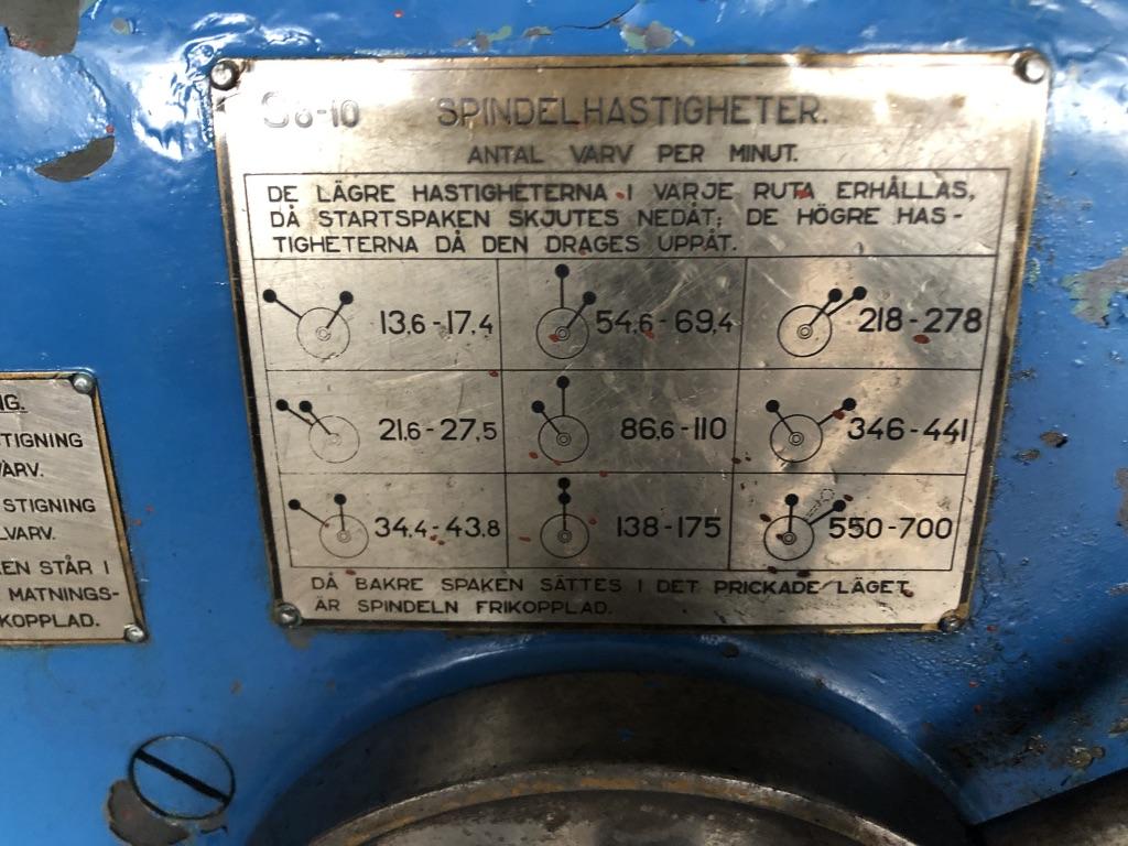 En Köping S10 Supportsvarv År: 1951 Typ: S10 Nr: 2116 Utrustning: -3-backchuck -Planskiva -Medbringarskiva -Toolfix hållare -Belysning och stänkskydd -Längmatningsklocka -Inga sidhållare medföljer -Veven till längdmatning är trasig Maskinen har använts till helt nyligen Förutom den trasiga veven så är maskinen i bra skick för sin ålder