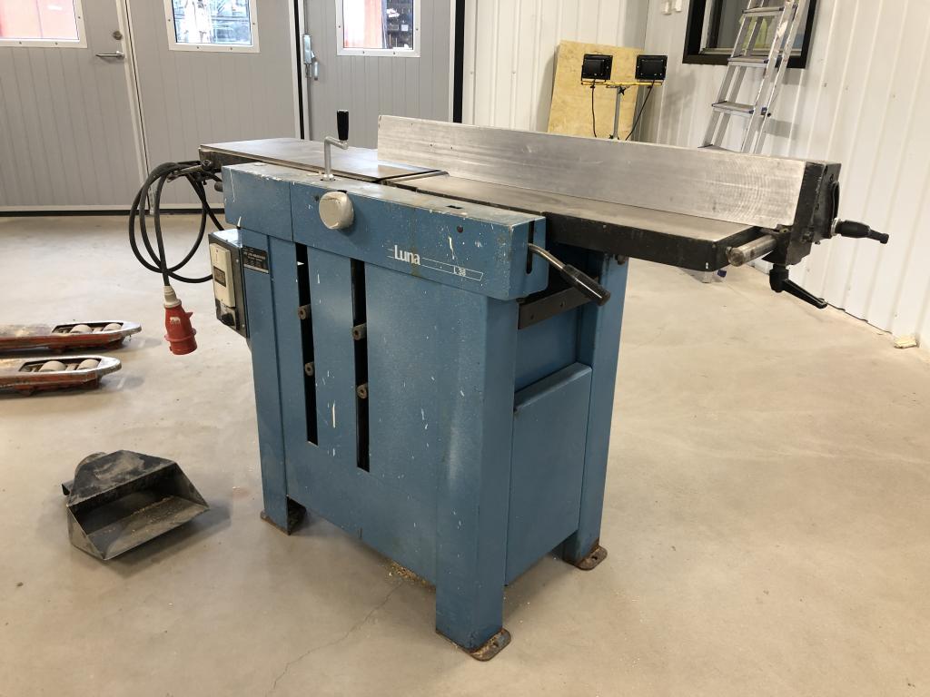 En Luna Rikt och Planhyvel L38 Typ: L38 År: 1986 Vikt: 260 kg Fin stabil maskin med gjutet bord som stått i hobbysnickeri