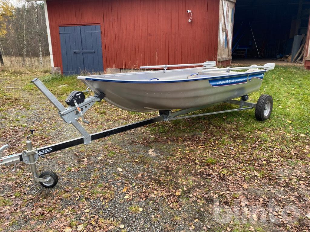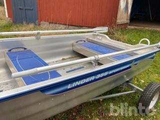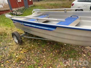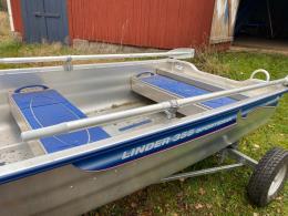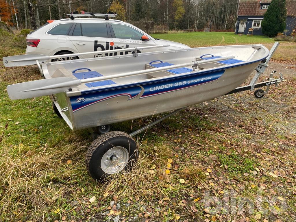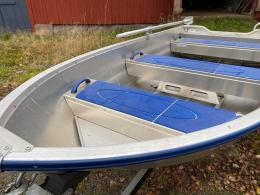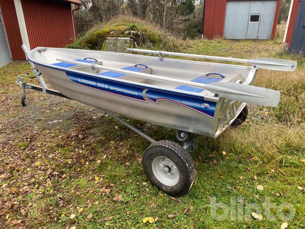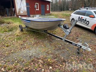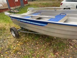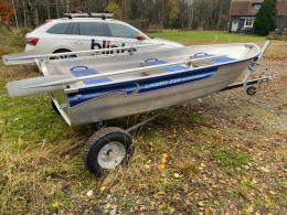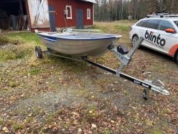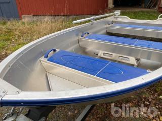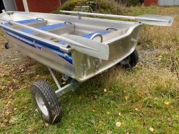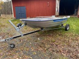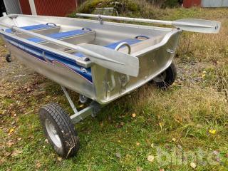 Aluminiumbåt med motor och kärra.