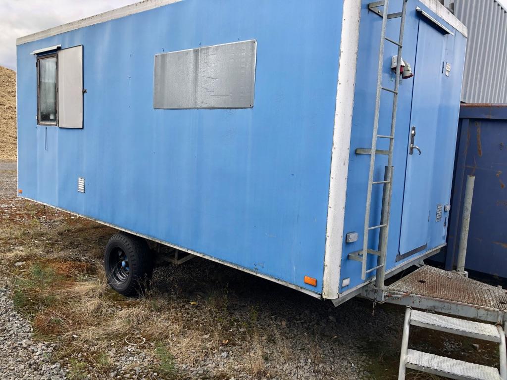 Mått: ca 6 meter lång 2 st drag, handske och dragögla Kylskåp Gasplatta Värmeskåp Tvättställ Ej funktions testad (Liten fuktskada bak i golvet) Skick se bilder